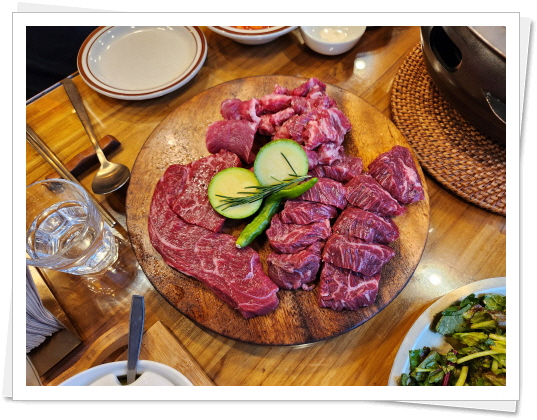 여린 외모와는 다르게 평소에 손도 크시고 배포도 크신 초원의 총무 이정화 목녀님의 묻지도 따지지도 않고 주문하시는 이 식당의 시그니처 메뉴는 소위 MZ 용어로 탕진잼의 즐거움을 잘 느끼게 해줍니다. 나중에 서술하겠지만 오늘 우리가 모인 이유를 먹음직스러운 한장의 사진으로도 느낄 수가 있습니다.