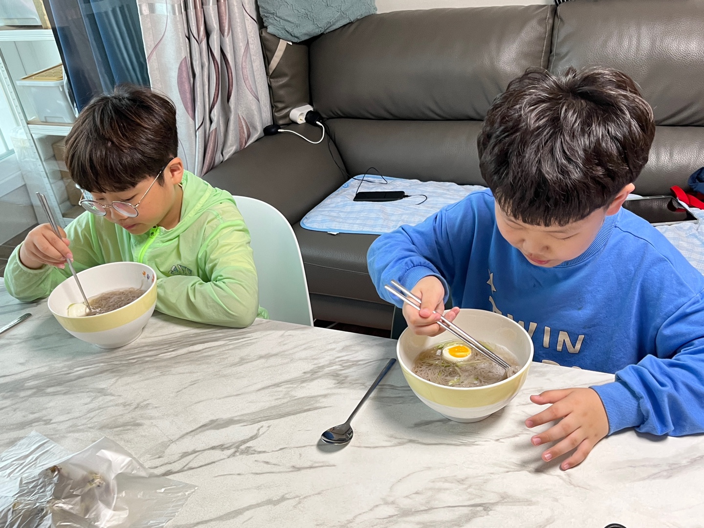 저녁 메뉴는 여름에 어울리는 물냉면과 비빔 냉면!! 그리고 수육입니다!!