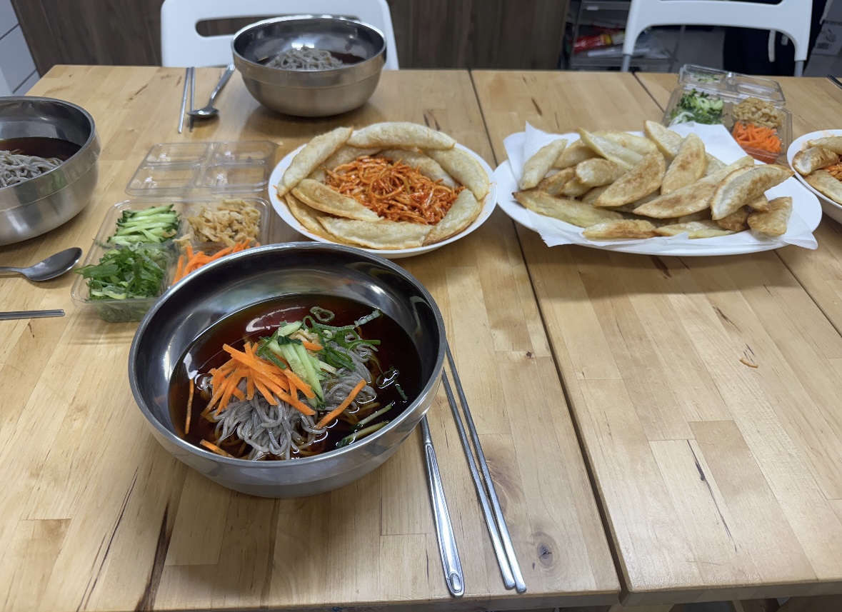 목자 목녀님의 합작으로 완전 맛있는 냉모밀, 야끼만두 양배추무침이 완성되었습니다!!!!