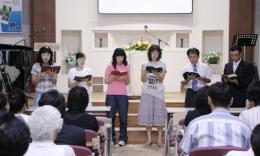 멋진웨이터로 변신한 조윤영집사님과 오전 1부예배때 찬양