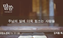주님의 일에 더욱 힘쓰는 사람들(고린도전서 15:57~58_주일1부)김석홍목사